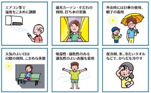 熱中症の予防には暑さを避けることと水分補給が大切です。