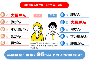 早期の大腸がんは自覚症状がほとんどないため、症状がないからと安心していると進行している場合があり大変キケンです!