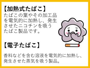 加熱式たばこや電子たばこの登場で見た目は変わっても自分や周りの人への健康リスクは変わりません。吸う人も吸わない人も誰もが気持ちよく過ごせる社会を目指しましょう。