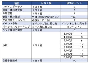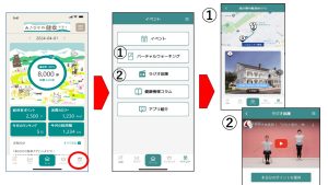 アプリでは、市内で実施する健康に関するイベントに参加するとイベントに応じてポイントがもらえます。