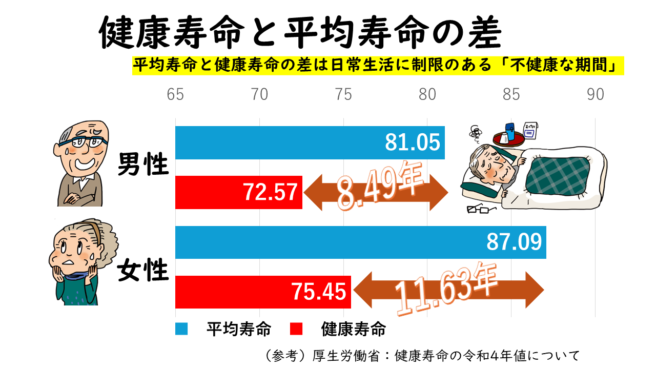 日本人女性の寿命は、世界1位となっていますが、長い人生を豊かに過ごすためには、健康寿命(健康上の問題がない状態で過ごせる期間)との差を縮めることが課題となっています。